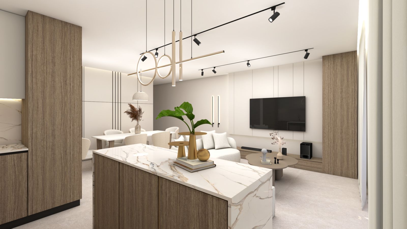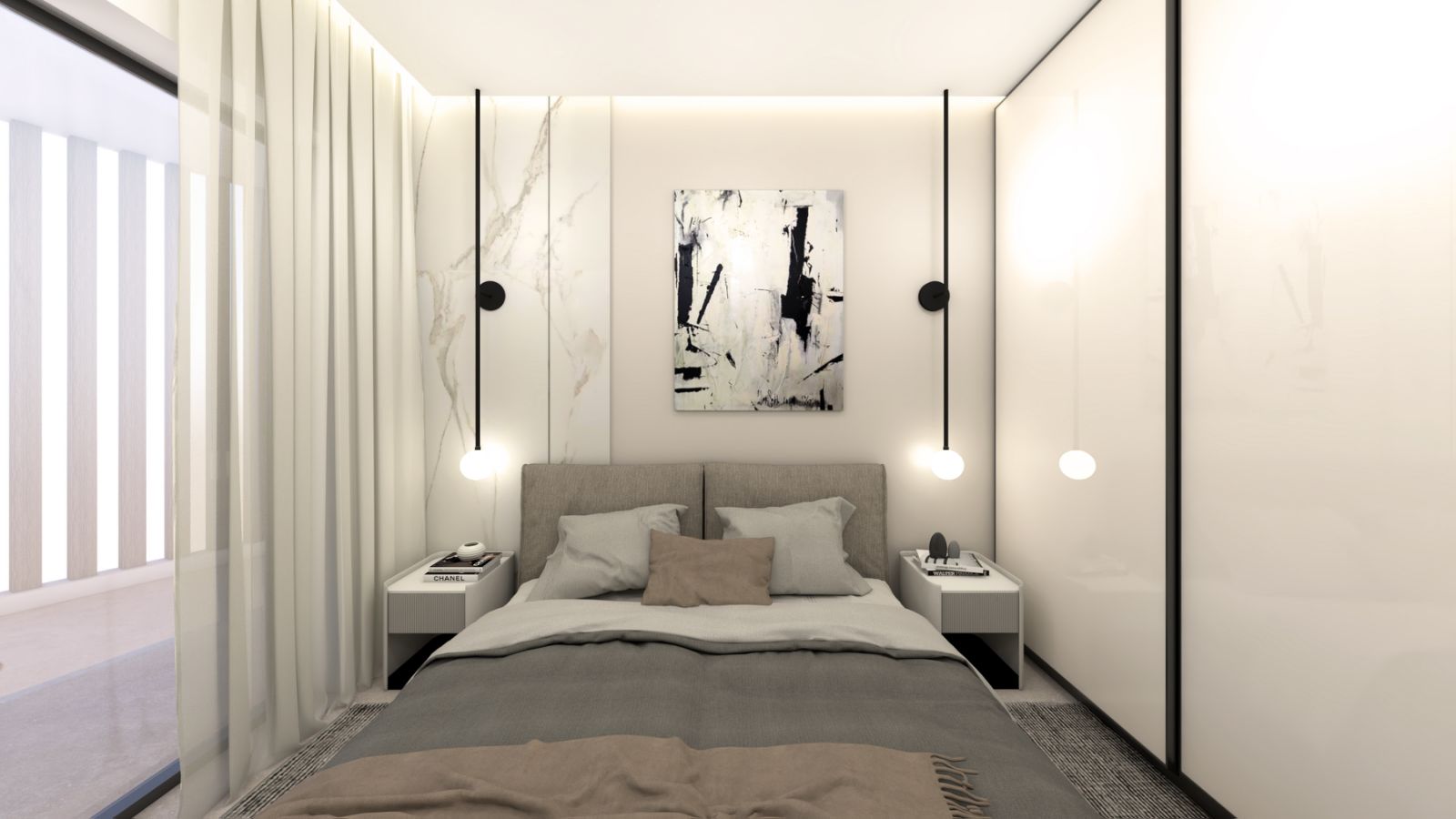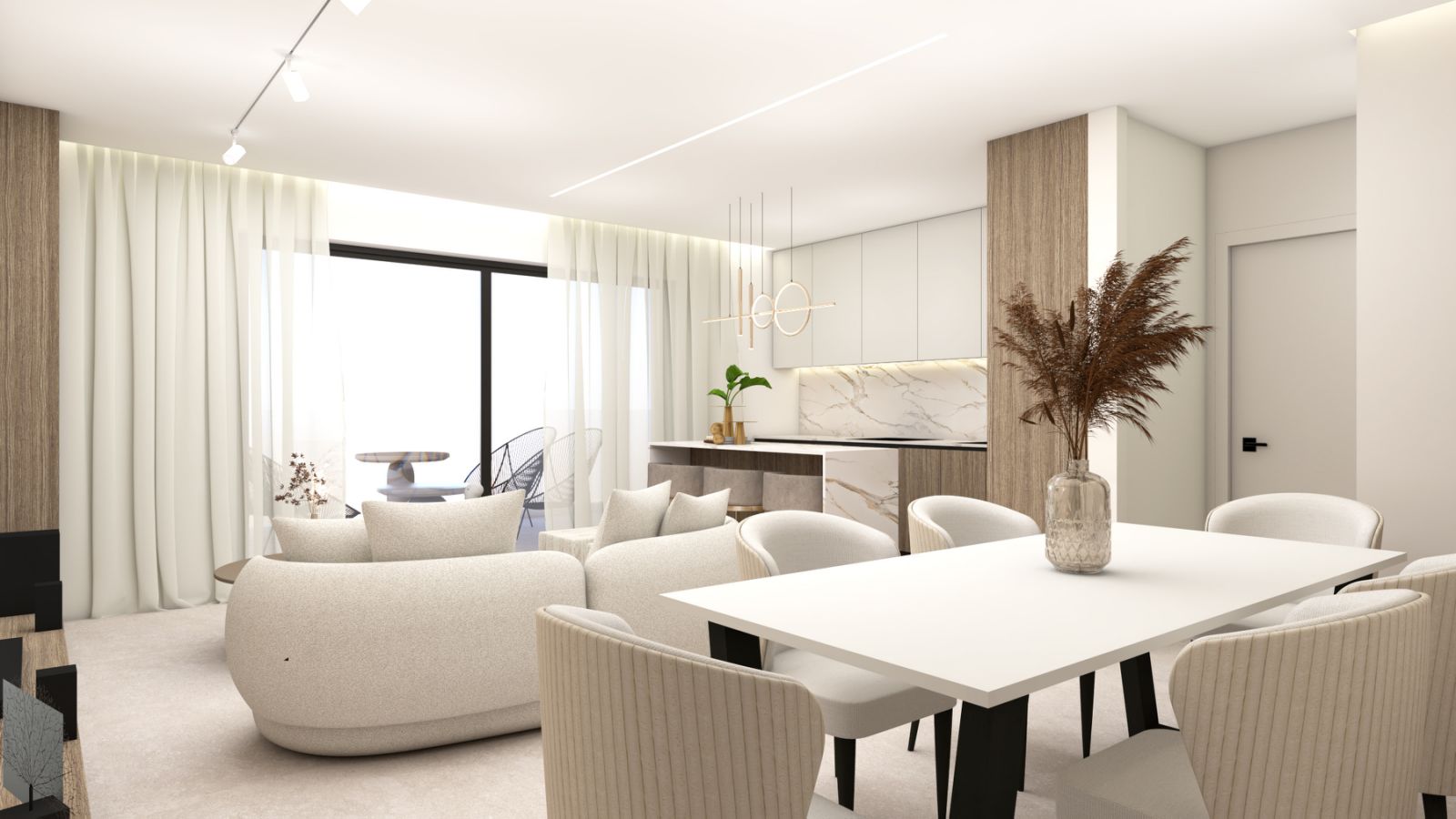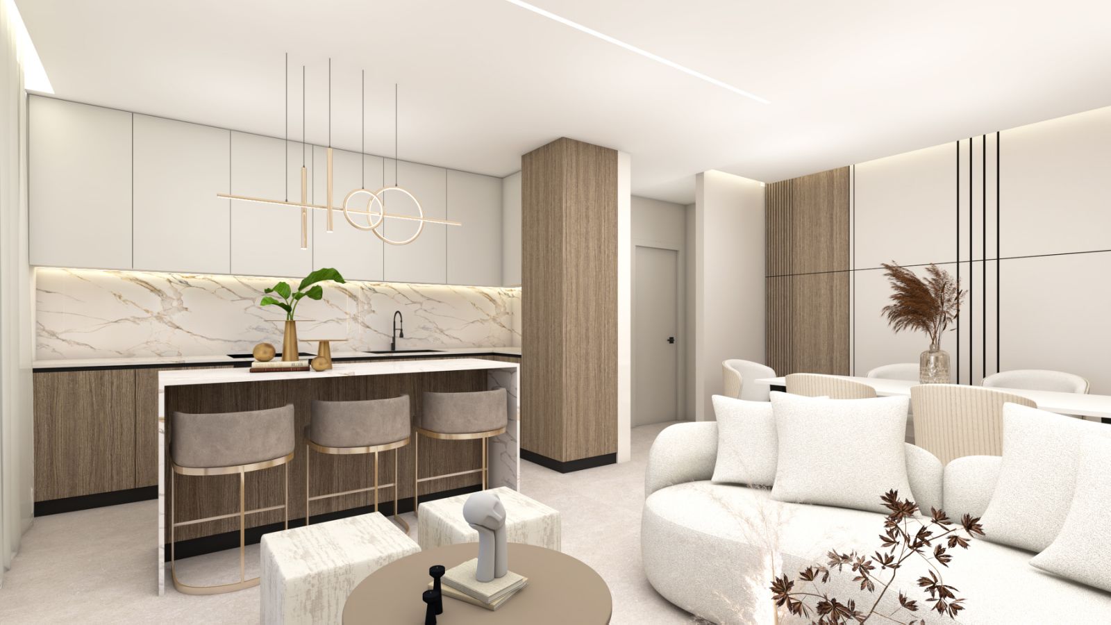 Διαμερίσματα 80.25 τ.μ. δύο υπνοδωματίων, με δύο μπάνια, αυτονομία σε θέρμανση και ψύξη μέσω αντλίας θερμότητας και σώματα Fan Coil, εγκατεστημένο ηλιακό θερμοσίφωνα σε κάθε διαμέρισμα, σύστημα εξωτερικής θερμομόνωσης (θερμοπρόσοψη), καθώς και θερμοδιακοπτόμενα ενεργειακά κουφώματα αλουμινίου ηλεκτροστατικής βαφής με ηλεκτρικά ρολά, σίτες και διπλούς ενεργειακούς υαλοπίνακες.